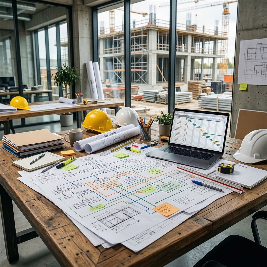 Büyük projelerin karmaşık süreçlerini uzman kadromuzla yönetiyoruz. Bütçe planlamasından malzeme tedariğine, ekip koordinasyonundan kalite kontrol süreçlerine kadar tüm aşamaları titizlikle takip ediyoruz. Hata payını sıfıra indiren mühendislik yaklaşımımızla, projelerinizi tam zamanında ve planlanan maliyetler dahilinde hayata geçiriyoruz.