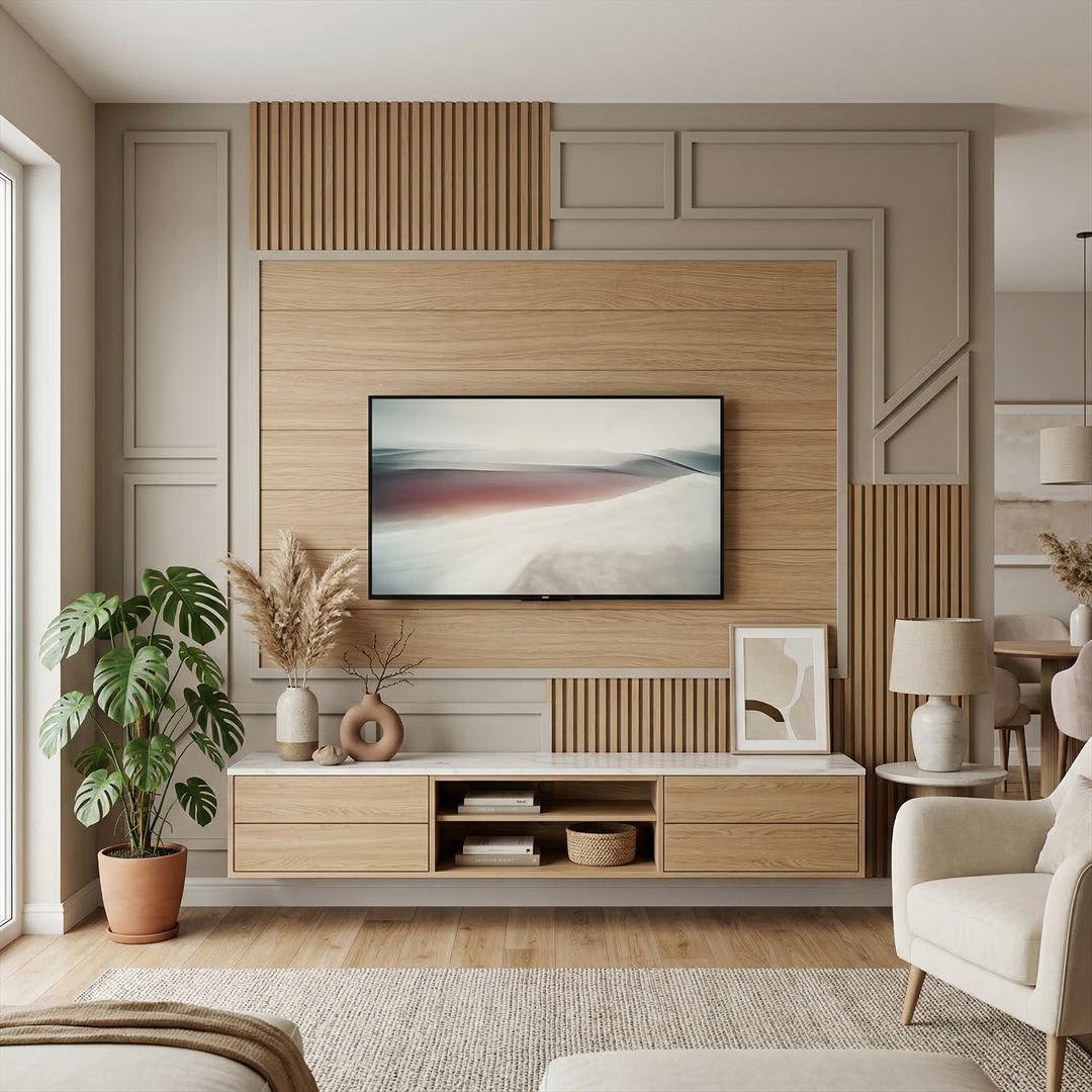 Oturma odanızın odak noktasını tasarlıyoruz. Taş, ahşap veya çıtalama detaylarıyla zenginleştirilmiş özel TV duvarları oluşturuyoruz.
